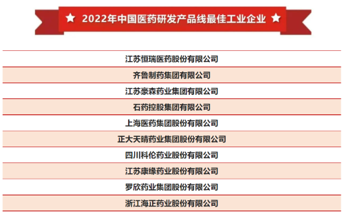 12月18日,2022年(第39届)全国医药工业信息年会在上海开幕,大会发布了备受行业关注的工信部2021年度中国医药工业百强榜单及系列分榜单。918博天堂医药连续多年上榜中国医药工业百强企业,并以强劲的研发实力和丰富的产品管线再次蝉联“2022年中国医药研发产品线最佳工业企业”榜单首位。