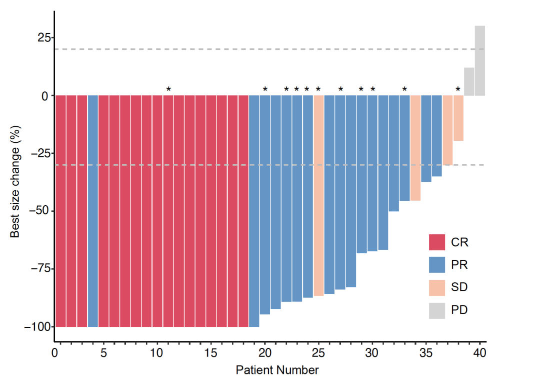 从2020年1月-2022年8月,研究共入组40例患者,包括3例安全导入期的患者。截至2023年2月1日,中位随访时间17.3个月(IQR 10.3-26.9)。入组患者中位年龄50.5岁;30例患者(75%)基线时存在神经系统症状;21例患者(52.5%)既往在转移性疾病期间接受过系统治疗。