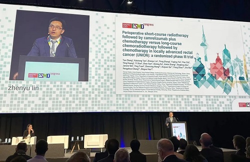 10月21日,918博天堂医药创新药卡瑞利珠单抗(艾瑞卡®)的一项研究“新辅助短程放疗序贯卡瑞利珠单抗联合化疗对比长程放化疗序贯化疗治疗局部晚期直肠癌”随机对照Ⅲ期试验(UNION) 以优选口头报告的形式正式亮相。该研究由华中科技大学同济医学院附属协和医院张涛教授、陶凯雄教授担任主要研究者,华中科技大学同济医学院附属协和医院林振宇教授在马德里现场报告了该重磅研究的结果1,此项研究是全球首个评估短程放疗序贯免疫治疗联合化疗治疗局部晚期直肠癌的Ⅲ期研究,已达到主要终点病理完全缓解(pCR),有望为直肠癌患者的治疗提供新策略。